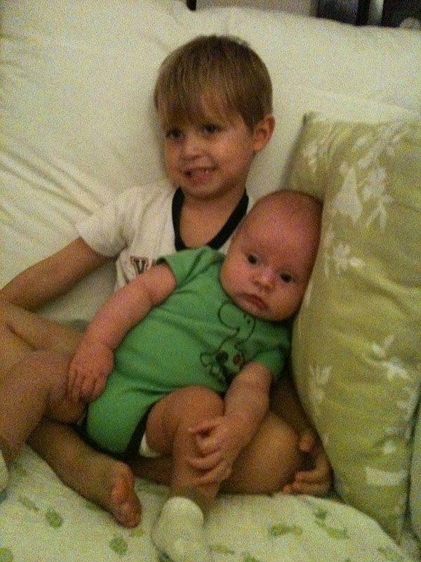 Now that I have to go into the boys' room to get Gray, I get to see how Ethan sleeps throughout the night. I tell you.. every time I go into the room he is in a different position. Usually with 2-3 limbs off of the bed and his head down at the bottom! I'm surprised he doesn't fall off! It's hilarious!