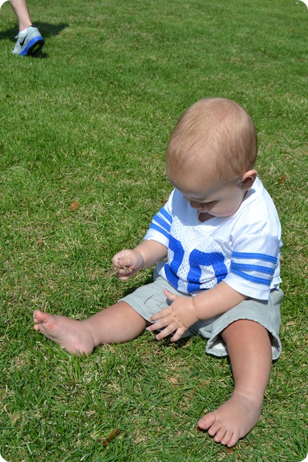 Apparently, all it takes is grass, football, and the smell of barbeque to get a baby to move up to actual crawling instead of army crawling!! I got a video but it wouldn’t upload.. I’m going to keep trying!